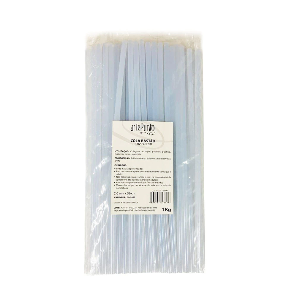 Bastão de Cola Quente Fina utilizada em pistolas para trabalhos artesanais em papel, papelão, e.v.a, plástico, madeira entre outros.