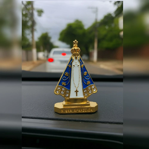 Ideal para ser colocado no painel do carro como um amuleto de proteção nas suas viagens, este item também se destaca como uma linda peça de decoração para o lar, perfeita para um altar de oração, mesa de cabeceira ou escritório.