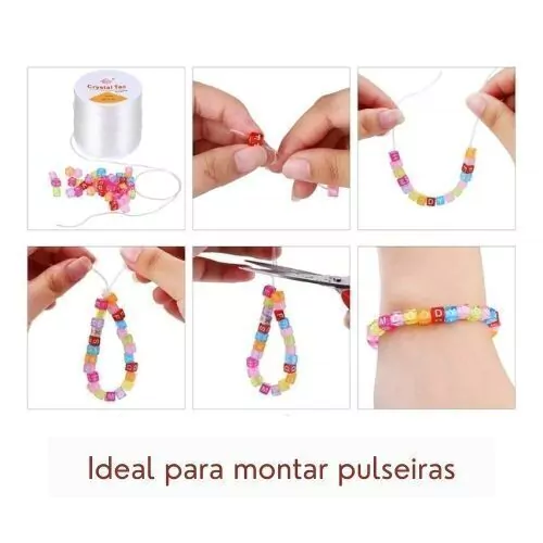 Ideal para confecção montagem de pulseiras, colares, tiaras, entre outros acessórios criativos. Super resistente e com estrutura elástica podendo ser esticado tranquilamente. Não arrebenta com facilidade.