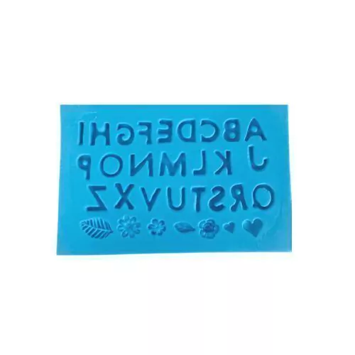 Molde de Silicone Alfabeto modelo 3 com todas as letras do Alfabeto e mais outros apliques de florzinhas, coração e folhas, para você produzir peças incríveis em Biscuit e outros artesanatos.