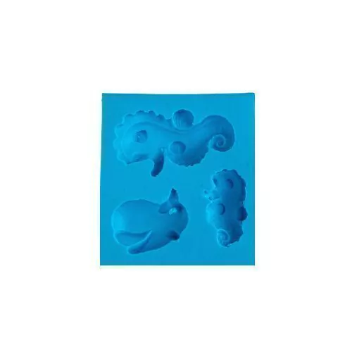 Molde de Silicone Cavalo Marinho e Baleia para apliques de Fundo do Mar com 3 cavidades, para você facilitar seu trabalho e produzir peças incríveis em Biscuit.