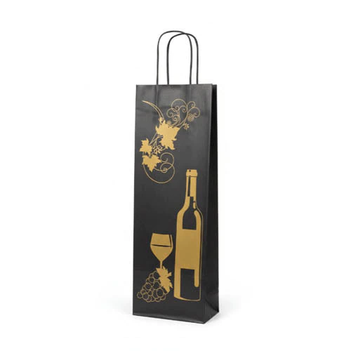 Elegante e resistente, a Sacola Kraft Preta Vinho Fino é a escolha perfeita para presentear ou transportar garrafas de vinho com sofisticação. Produzida em papel kraft de alta qualidade, ela possui acabamento na cor preta e um delicado desenho dourado que traz um toque de charme e requinte.