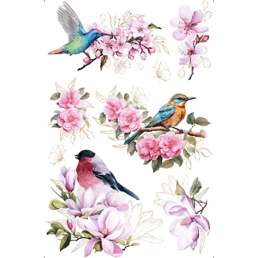 Transfer de Imagem Litoarte Flores No Galho Passarinhos